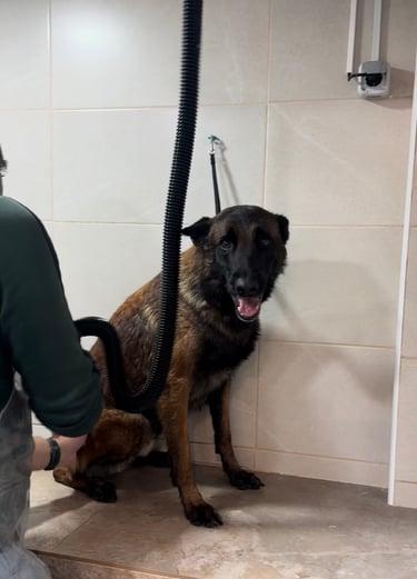 Los baños de peluquería son completos, incluyen limpieza de oídos, vaciado de glándulas, arreglo de higiénicos, corte de uñas, baño minucioso, la cosmética que sea precisa (mascarilla, acondicionador bifásico..), secado completo, estirado, deslanado, arreglo a tijera o corte completo, perfume, lazo y foto en photocall.