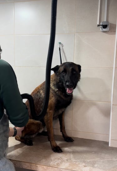 Zona de baño y secado, tiempo ilimitado, champús de alta cosmética, manoplas de baño, toalla, secadores/expulsores, cepillos/cardas/peines, perfume, lazo, y foto en photocall.